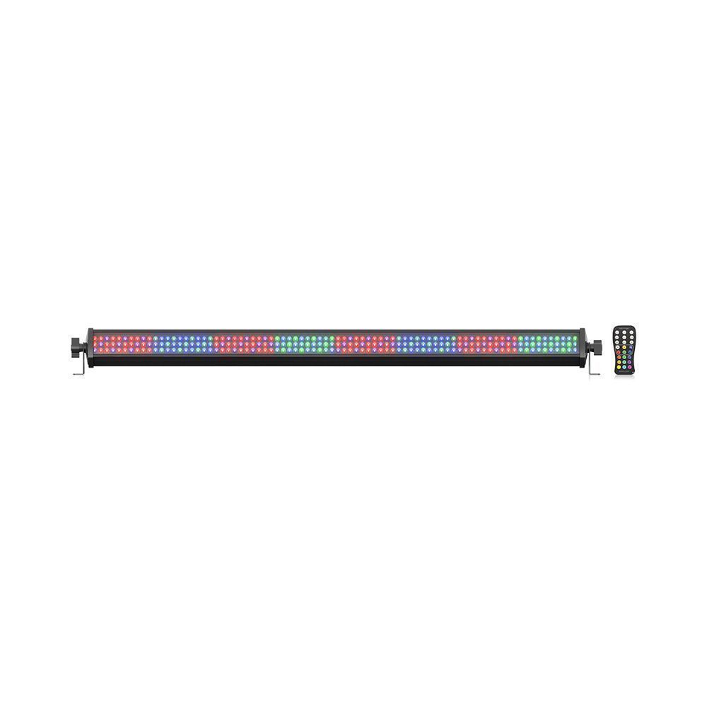 EUROLIGHT LED FLOODLIGHT BAR 240-8 RGB-R - это профессиональная мультирежимная светодиодная панель с линейным эффектом RGB. BAR 240-8 RGB имеет 240 светодиодов RGB, распределенных в 8 отдельных сегментах, все полностью управляемые, а система смешивания цветов RGB обеспечивает безграничное количество цветов и эффектов! Все функции можно настроить с помощью 4-кнопочной панели управления и светодиодного дисплея или по беспроводной связи с помощью прилагаемого пульта дистанционного управления IRC1. Вы выбираете между 5 различными режимами работы: автоматический режим, режим статического цвета, DMX 512, управление звуком или режим ведущий / ведомый. BAR 240-8 RGB идеально подходит для любых сцен, баров, клубов, вечеринок, концертов и других мероприятий.