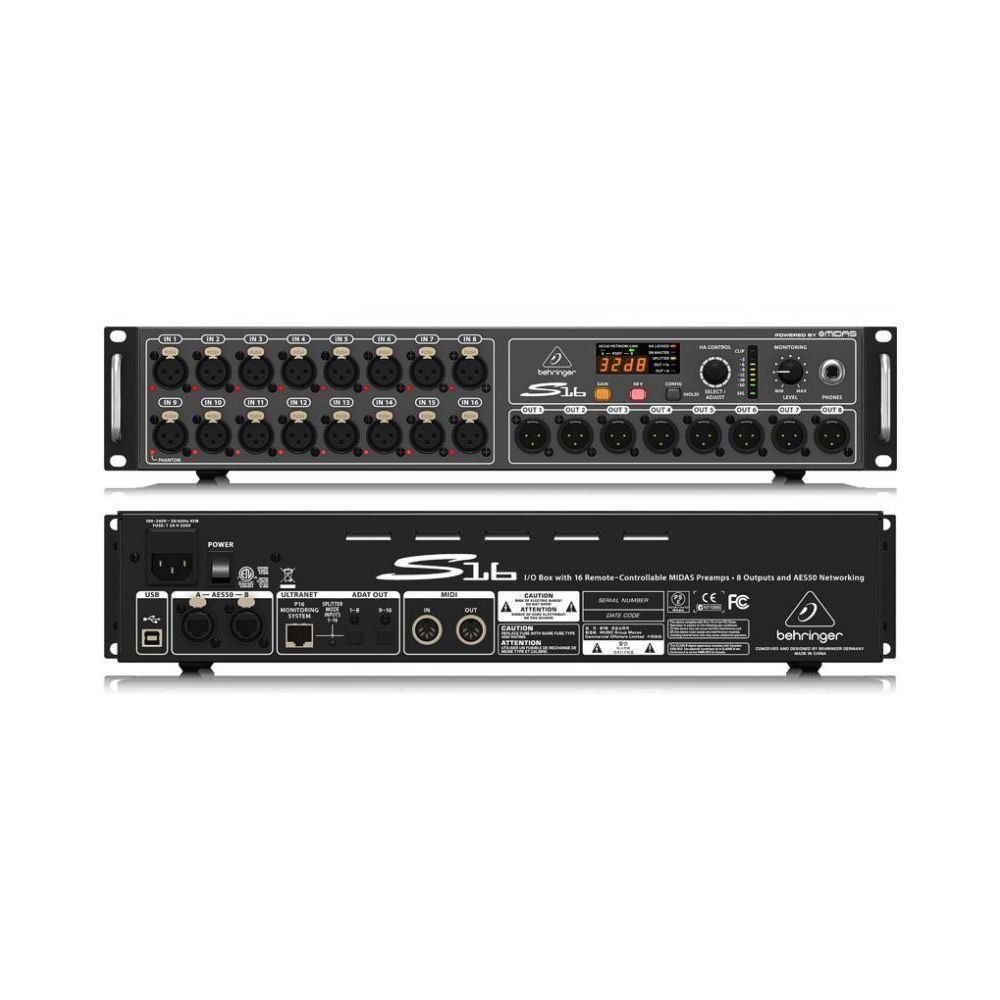 Behringer S16 стейдж-бокс, 16 мик/лин входов, 8 лин выходов XLR, 2 x AES50, ULTRANET, 2 x ADAT, 2U.