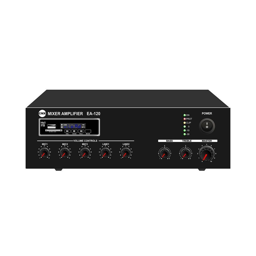 CMX Audio EA-120 Микшер-усилитель 120 Вт, встроенный Mp3 плеер USB и SD, FM тюнер, 3 Mic, 2 Aux, 70V/100V/4-16ohm