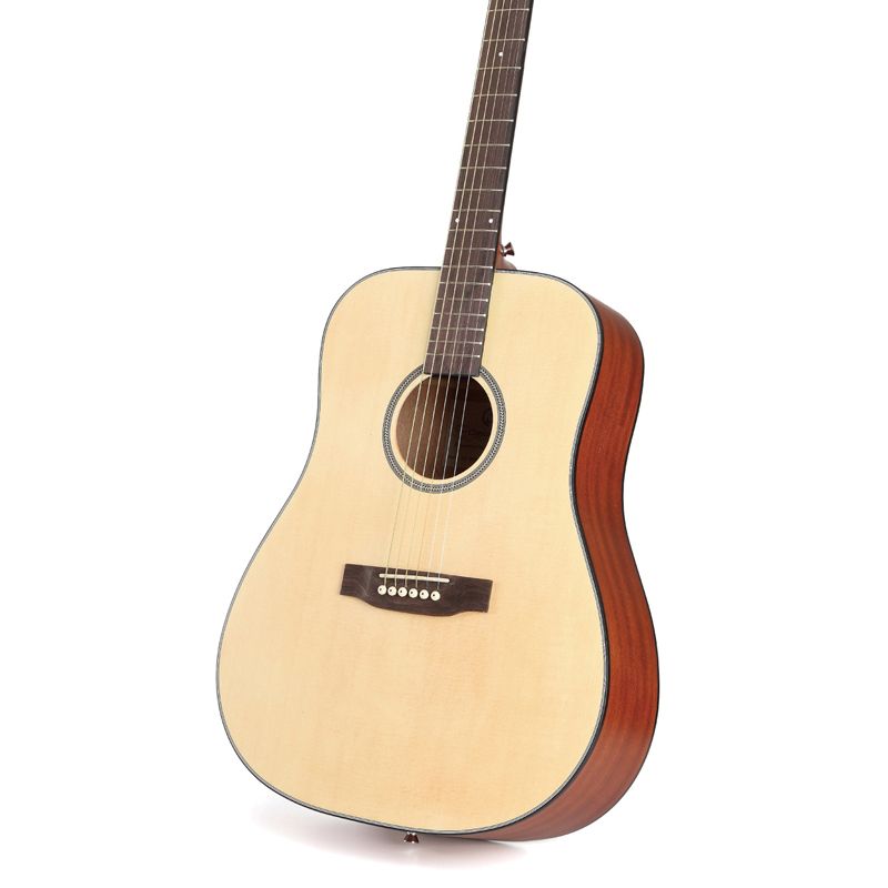 Полноразмерная акустическая гитара SX SD304 представляет собой качественный инструмент, который одинаково хорошо подойдет как для начинающих, так и для продвинутых гитаристов. SX SD304 – это воплощение изысканной простоты и элегантности. Инструмент выполнен в натуральном цвете с матовой отделкой. Верхняя дека изготовлена из ели, которая делает звучание гитары ярким и звонким. Нижняя дека из махагони обеспечивает отличный резонанс. Хромированные колки прекрасно держат строй. На корпусе гитары расположены два хромированных держателя, которые позволяют быстро и надежно закрепить ремень или шнур. Инструмент рассчитан на установку металлических струн. Акустическая гитара SX SD304 – превосходный инструмент, который приятно удивит вас не только отличным звучанием, но и привлекательной ценой.