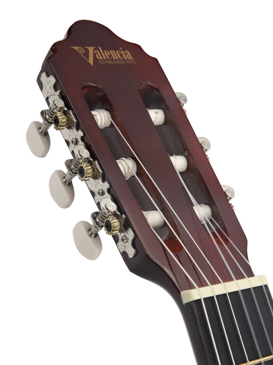 Valencia VC104 – это полноразмерная классическая гитара отличного качества. Инструмент подходит как для обучения в музыкальной школе, так и для домашних занятий. Valencia VC104 обладает насыщенным звучанием и имеет широкие тональные возможности. Корпус гитары изготовлен из липы, что положительно влияет на резонансные особенности инструмента. Гриф из нато имеет удобную форму и оптимальную ширину. Нейлоновые струны, установленные на комфортной для игры высоте, делают гитару удобной даже для самых юных исполнителей. Надежная колковая механика обеспечивает мягкость хода и прекрасно держит строй. Классическая гитара Valencia VC104 сочетает в себе прекрасный дизайн, доступную стоимость и превосходные звуковые характеристики.